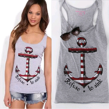 外貿女裝歐美夏季新款船錨印花大碼無袖t恤 /