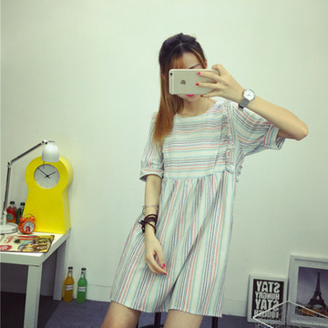 2016夏裝袖甜美娃娃裙小清新孕婦裝棉麻連衣裙 /