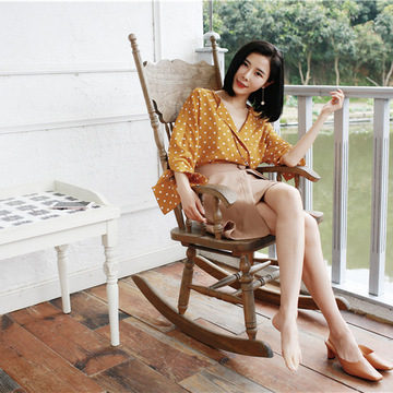 DR.AZHU女裝 復古 黃色波點V領襯衫 本期必入 /