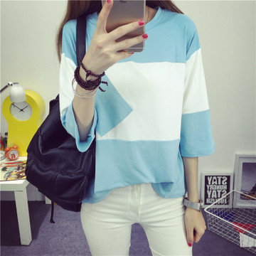 2016韓版新款簡約短袖t恤女衫夏裝寬松七分袖上衣 /