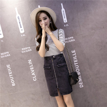 實拍 2016夏季韓版高腰修身顯瘦牛仔半身裙包裙女 /