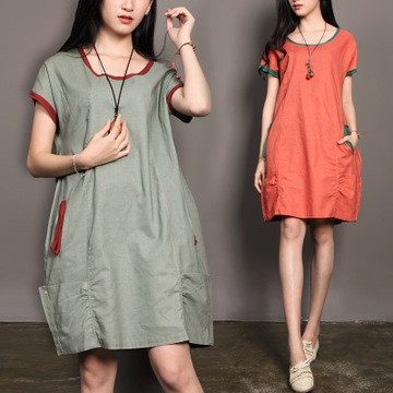 2016新款復古大碼女裝寬松中長款t恤裙復古森女加肥加大連衣裙夏 /