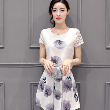 2016夏裝新款 韓版女裝 改良旗袍領 彈力棉質印花連衣裙一件代發 /