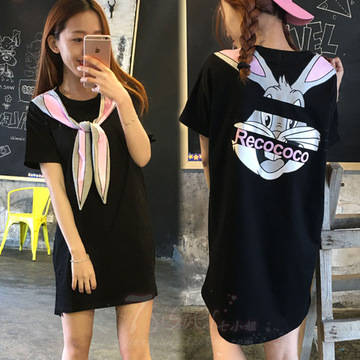 韓國代購2016夏季可愛純棉卡通韓版寬松中長款短袖t恤女裝潮 /
