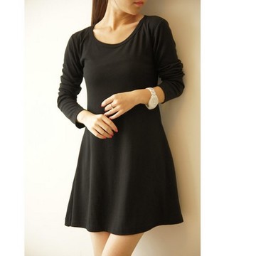 廠家直銷秋季純棉磨毛拉架收腰大碼長袖中長款打底裙女A字連衣裙 /