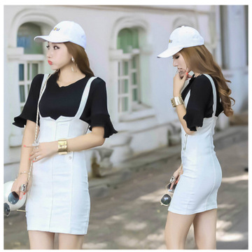 韓國夏季新品時尚白色背帶裙修身包臀裙減齡吊帶裙女短裙 /