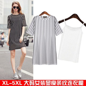 2016夏裝新款 歐美風大碼女裝 豎條紋顯瘦連衣裙兩件套 /