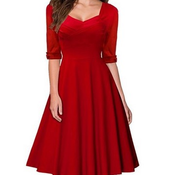 亞馬遜秋冬熱賣新款女裝時尚V領中袖修身氣質大擺連衣裙 L197 /