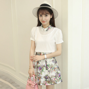 2016夏季歐根紗復古碎花a字套裝裙兩件套印花連衣裙 /