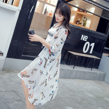 2016夏新款寬松薄款外套印花中長款沙灘雪紡防曬衣開衫 /