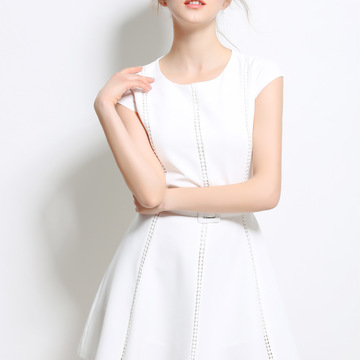 2016夏季修身夏裙連衣裙夏裝女裝短袖收腰抹胸顯瘦氣質a字裙子仙 /