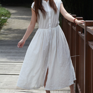 2016夏裝新款文藝兩穿短袖棉麻連衣裙女寬松顯瘦長裙 /