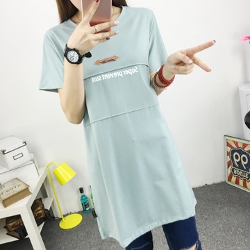 • 2016夏季新款凈色百搭寬松中長款套頭圓領短袖女式T恤 /