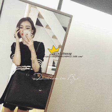 歐美走秀同款歐洲站2016夏裝新款時(shí)尚拼接修身收腰A字裙連衣裙女 /
