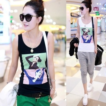 • 2016韓國背心女夏外穿印花休閑露肩百搭時尚無袖上衣T恤寬松 /