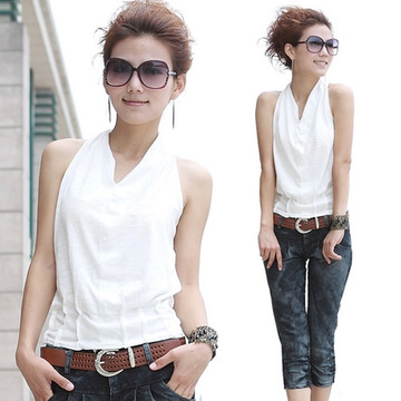• 夏裝新款女背心韓版掛脖無袖T恤上衣 /
