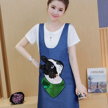 2016夏裝牛仔背帶裙套裝韓版修身學院風連衣裙女 /