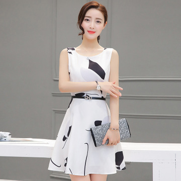 新款女裝夏裝韓版修身高腰連衣裙女無袖圓領白色小清新公主裙 /