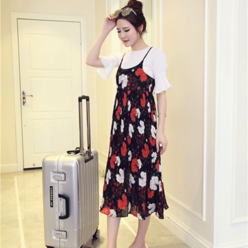 2016夏裝潮流新品韓版女裝雪紡上衣吊帶碎花長裙吊帶裙套裝 /