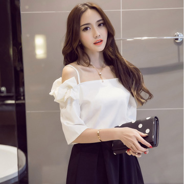 2016夏新款韓國風清新甜美花邊袖吊帶百搭時尚氣質小衫實拍-1 /