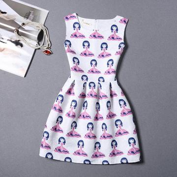 夏裝新款復古印花修身收腰顯瘦a字無袖禮服蓬蓬裙背心連衣裙 /