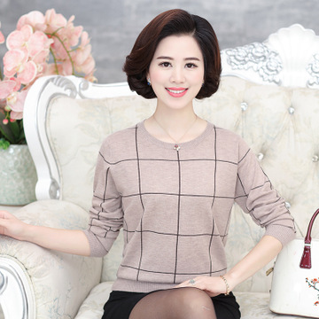 新品中年媽媽裝格子針織衫長袖中老年女裝秋季毛衣打底衫上衣批發(fā) /