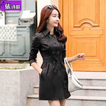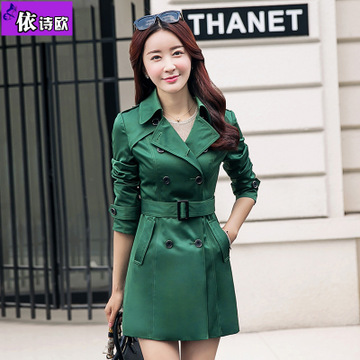 依詩歐春秋裝新品中長款修身氣質淑女韓版女式風衣女裝外套 /