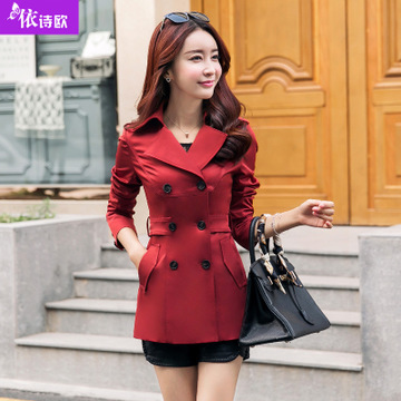 依詩歐春秋新品中長款修身氣質雙排扣韓版女士風衣女外套女裝 /