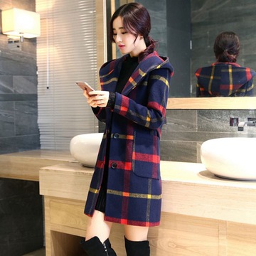 秋冬款休閑方格子大衣女裝韓版毛呢外套中長(zhǎng)款風(fēng)衣學(xué)生冬天潮流 /
