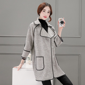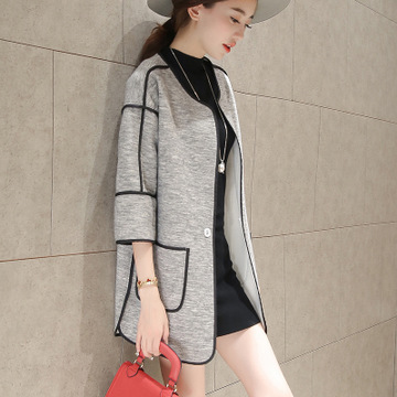 拼接韓版風(fēng)衣女寬松七分袖休閑中長(zhǎng)款外套女春秋學(xué)生開衫 /