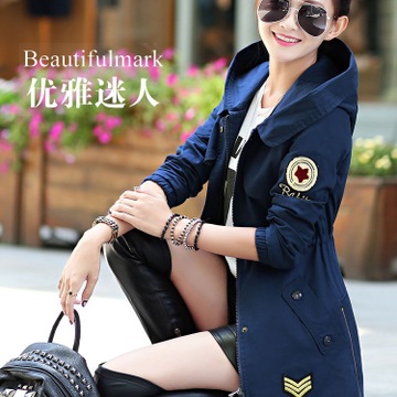 秋冬韓國(guó)休閑工裝外套女學(xué)院風(fēng)修身寬松純棉帶帽中長(zhǎng)款風(fēng)衣女學(xué)生 /