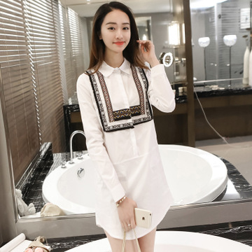 秋季新款流蘇中長款長袖襯衫大碼女裝寬松民族風打底連衣裙女 /