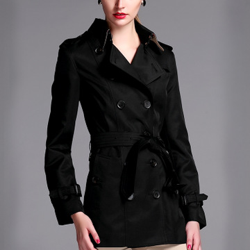 秋冬新品英倫風高端女裝風衣雙排扣高貴黑色 /