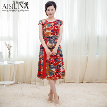 中年媽媽裝連衣裙短袖碎花旗袍中老年女裝夏裝裙子廠家直銷批發 /