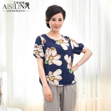中年女裝夏裝襯衫大碼新款中老年媽媽裝棉麻亞麻碎花襯衣廠家直銷 /
