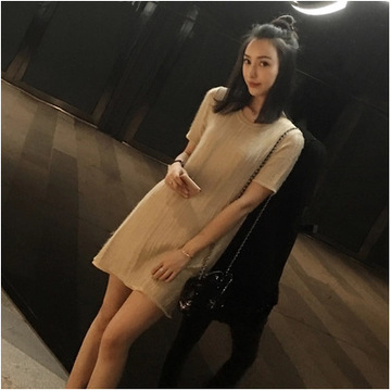 夏裝新款女裝潮明星同款小香風直筒中裙子夏季顯瘦針織連衣裙 /