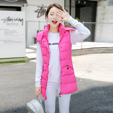 反季秋冬裝女裝新款棉馬甲女中長款連帽背心馬甲坎肩大碼棉衣外套 /