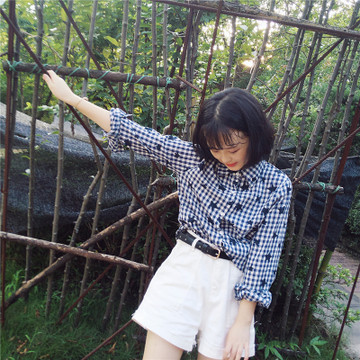 實(shí)拍 秋季新款 寬松百搭經(jīng)典格子星星圖案棉質(zhì)長(zhǎng)袖襯衫 /