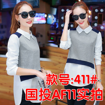 春秋裝新款韓版襯衫拼接上衣修身顯瘦襯衣假兩件襯 /