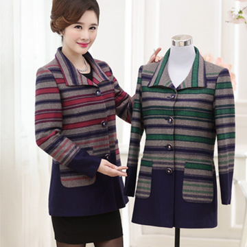 語柳新款時尚媽媽裝翻領紐扣外套春秋裝中老年女裝條紋外衣 /