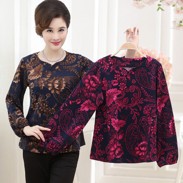 語柳秋季新款中老年女裝長袖印花t恤媽媽裝上衣體恤 /