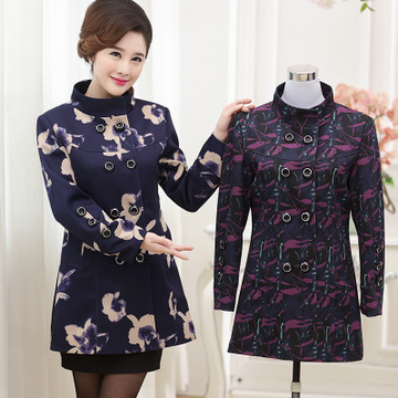 語柳中老年女裝秋裝新款印花中長款風衣外套媽媽裝修身翻領 /