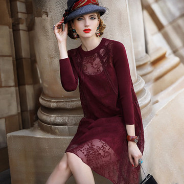 秋冬新特大碼女裝性感經典桑蠶絲寬松七分袖真絲連衣裙套裝 /