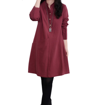 初秋新品韓版休閑大碼女裝文藝森女立領開筒寬松顯瘦連衣裙 /