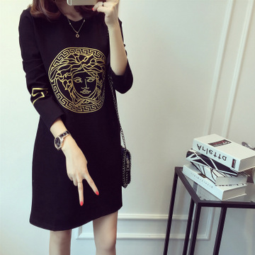 秋冬新款韓版大碼女裝寬松學生卡通印花長袖衛衣打底連衣裙 /