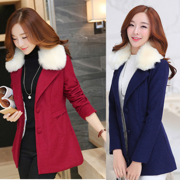 秋冬新款女裝韓版時尚修身西裝領(lǐng)外套純色呢子大衣中長款女潮 /