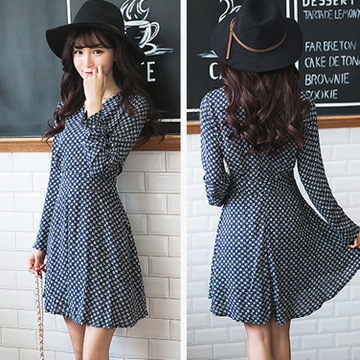 秋女士時尚連衣裙韓版套頭碎花V領(lǐng)長袖T恤女高腰中長款打底衫 /