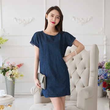 春夏女裝短袖寬松水洗牛仔女式連衣裙大碼 連衣裙批發(fā) /