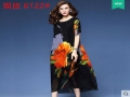 夏裝新款桑蠶絲連衣裙中長款修身旗袍大擺印花真絲連衣長裙 /