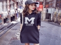 實(shí)拍秋裝韓版寬松中長(zhǎng)款開(kāi)叉帶帽長(zhǎng)袖套頭加厚加絨衛(wèi)衣裙 潮 /